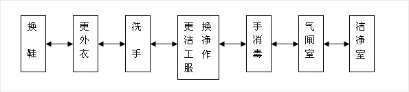 1-1、人员净化:生物医药洁净室(区)的人员净化程序宜按下图布置
