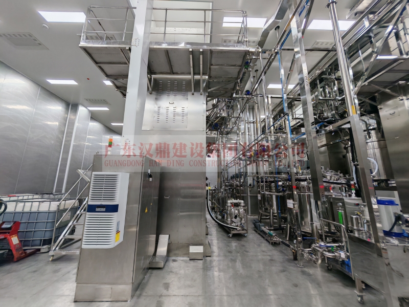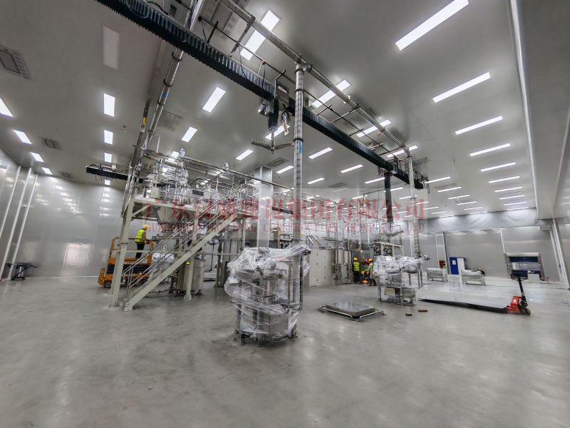 关键区域采用垂直单向流布局,换气次数≥60次/小时;墙体、吊顶及地面均采用双层夹芯彩钢板与环氧自流坪,接缝全密封处理,确保气密性与防潮性能。