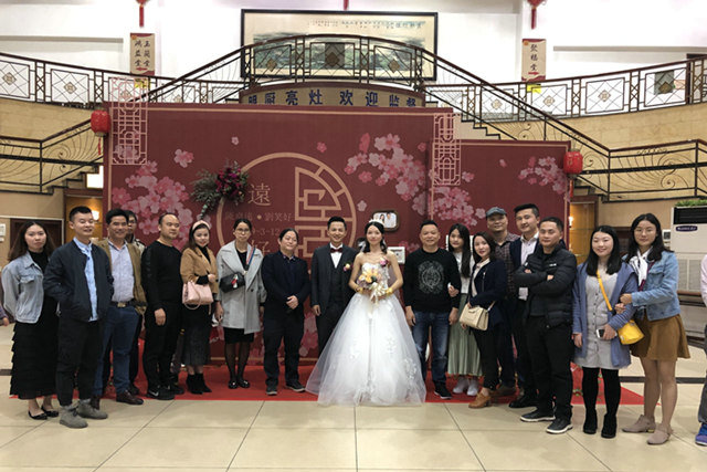 事日,三月十二日,我司汉鼎建设集团员工陈先生举办婚礼,我司全体员工由总经理林总领头参加婚礼,并表示祝贺。